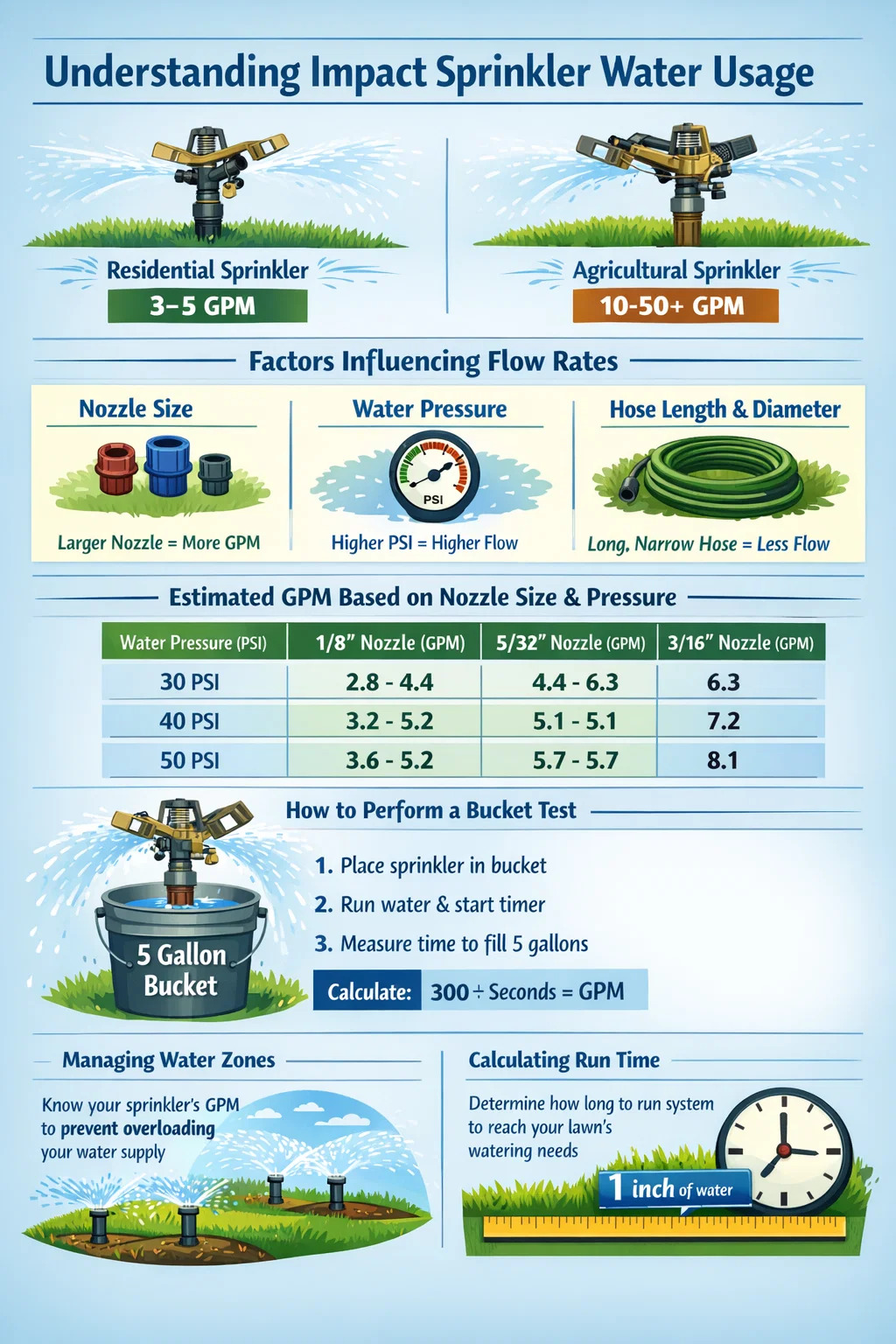 If you need to know exactly how much water your specific impact sprinkler is using for irrigation planning or utility billing, you can perform a simple "Bucket Test."